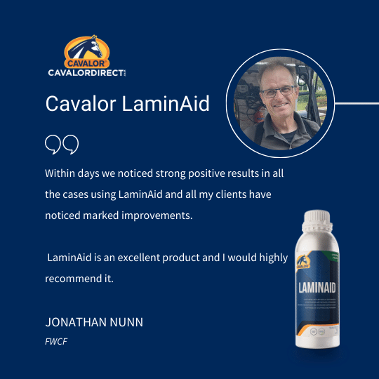 Since starting laminaid Henry has returned to 8 hrs turnout and now is back in just normal shoes. Very happy